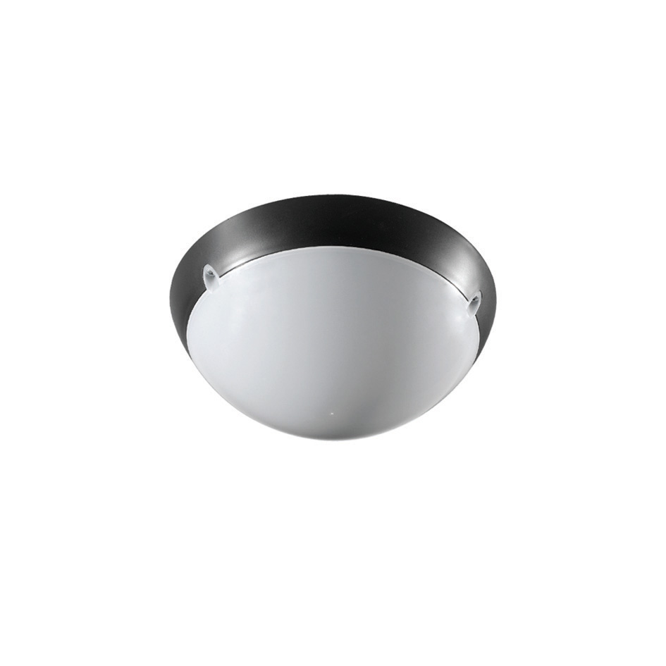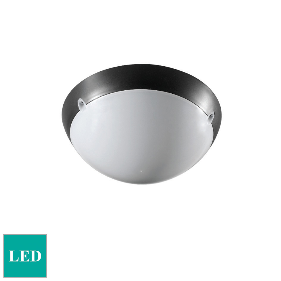 Indoor and outdoor ceiling lamps for residential area lighting. With 2500 lumen led plate 21w and 1500 lumen led plate 12w, 230v (without BALLAST). Thermostable base injection molded. Opal polycarbonate diffuser. High elasticity silicon protection gasket. Aluminum plate equipped with led. The electric cable can enter the back side or the lateral side of the base.
