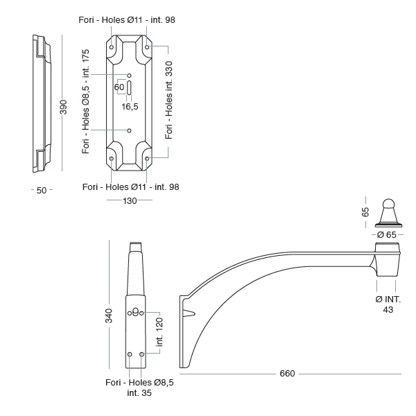 1039-A Ischia wall-arm plate - L130 x W50 x H390