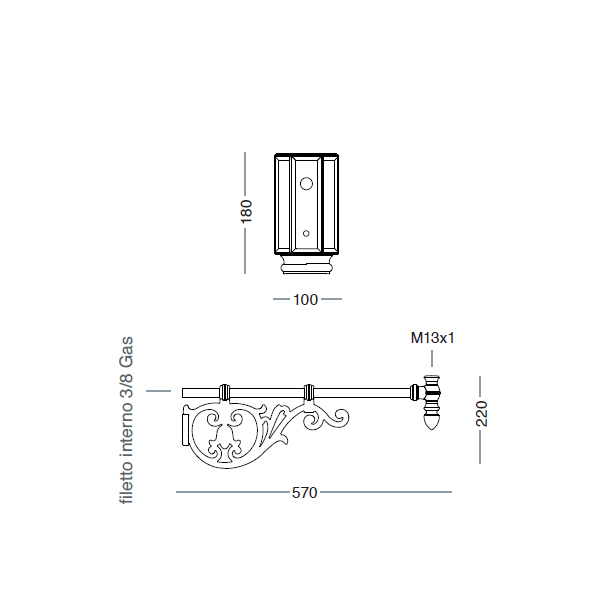 6082-A-52 2 lights center pole int. Ø 60 for 1066-A/1067-A - W100 x H180