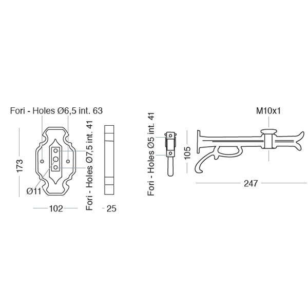 1079-A Arm plate for Art. 1078-A - L100 x W25 x H175