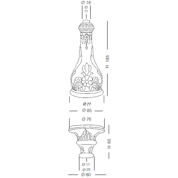 14-013 Composable column - Ø85 x H185 - Through hole Ø11 - Upper flat Ø18 - Lower housing Ø77