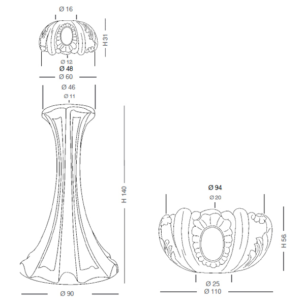F402 Composable column - Ø110 x H56 - Through hole Ø20 - Upper flat Ø25 - Lower housing Ø94