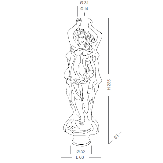 L63 x W63 x H235 - Through hole Ø14 - Upper flat Ø31 - Lower flat Ø32.