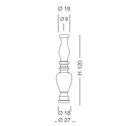 Ø27 x H120 - Through hole Ø9 - Thread M10/1 - Upper flat Ø18 - Lower flat Ø18.