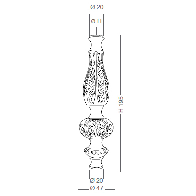 Ø47 x H195 - Through hole Ø11 - Upper flat Ø20 - Lower flat Ø20.
