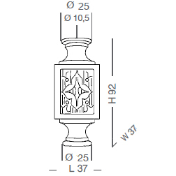 L37 x W37 x H92 - Through hole Ø10,5 - Upper flat Ø25 - Lower flat Ø25.