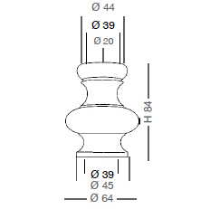 Ø64 x H84 - Through hole Ø20 - Upper flat Ø44 - Upper housing Ø39 - Lower housing Ø39 - Lower flat Ø45.