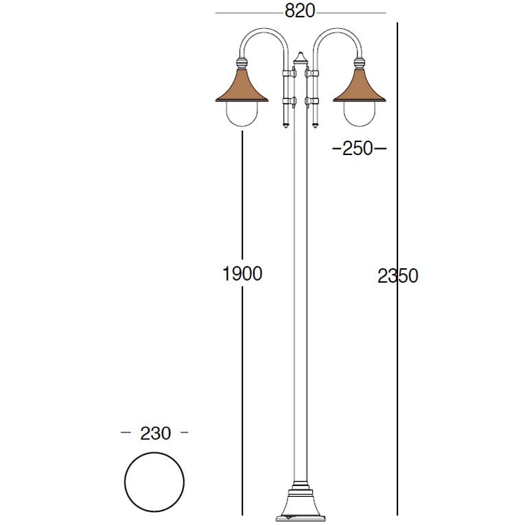 Poteau 2 Lumière H2350 -chapeau en cuivre- Columba - Disegno tecnico