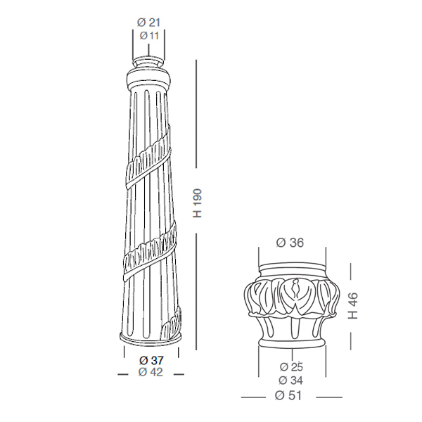 E251 Colonne modulaire - Ø42 x H190 - Trou traversant Ø11 - Étage supérieur Ø21 - Siège inférieur Ø37