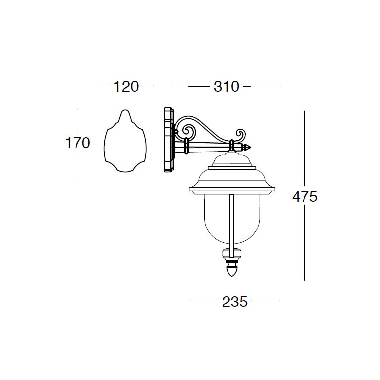 Lampada a parete -luce in alto- Dolphin - Disegno tecnico