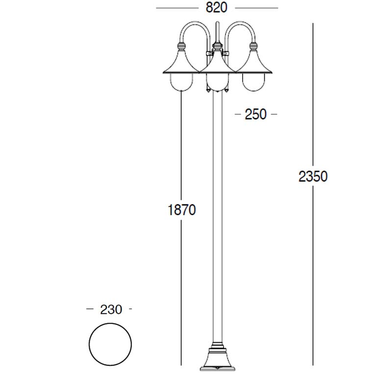 Palo 3 Luci H2350 Norma - Disegno tecnico