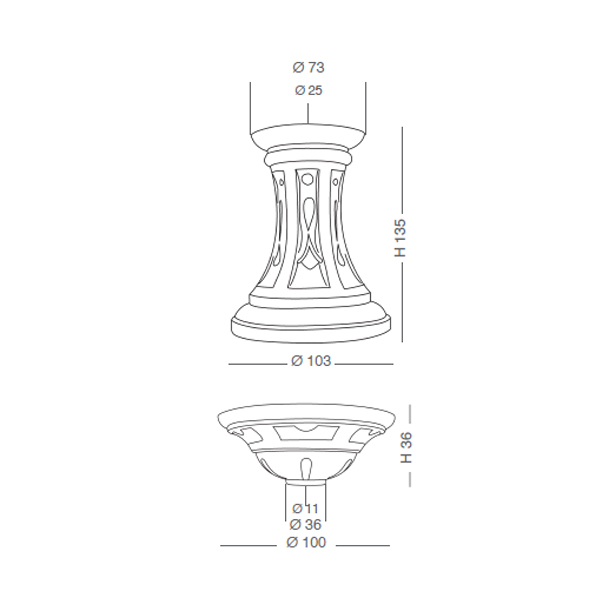17-003 Copricentro - Ø100 x H36 - Foro Ø10,5 - Piano sopra Ø20