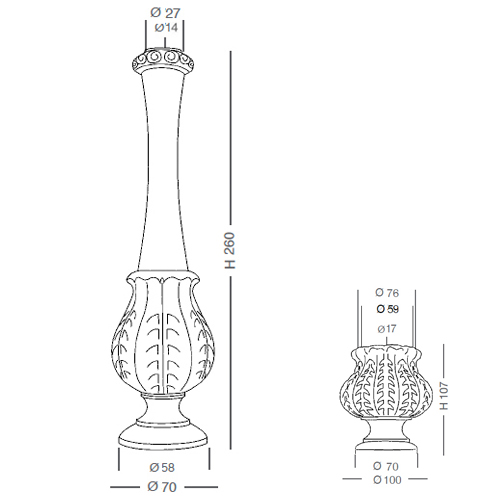 E107 Colonna - Ø70 x H260 - Foro passante Ø14 - Piano sopra Ø27 - Piano sotto Ø58