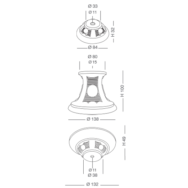 G431 Colonna componibile - Ø132 x H49 - Foro passante Ø11 - Piano sotto Ø38